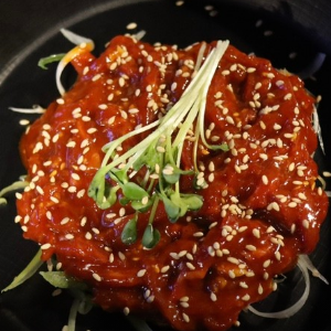 튀겨진 오겹살은 첨인데 육즙 가득하니 넘 맛있네요. 저 원래 육회 못먹는데 여기껀 고소하고 쫄깃하니 넘 맛있었어요.
