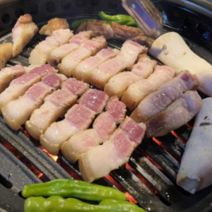 삼겹살뿐만 아니라 꽃목살까지 다 맛있어서 여기는 그냥 취향에 따라 좋아하는 부위로 시켜 드시면 될 거 같아요.