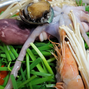 끓여먹는 해왕짬뽕 오징어, 전복, 새우 등 여러 가지 해산물과 숙주를 넣고 끓여 국물이 맛있어요.