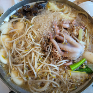 아구찜에 큰 오징어 한마리 있는게 좋았고 또 메인메뉴처럼 나오는 소고기만두 전골이 있어 아이들 데려가도 먹을게 있어 좋았죠.