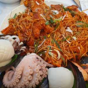 양념소스가 너무 맛있게 잘 베어 있고 아구 살도 많아요. 갑오징어와 문어 새우까지 해물도 다양하고 맛있어요. 같이 나오는 불백은 아이들 먹기 너무 좋아요.