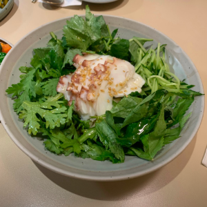 돌문어 간장국수는 문어와 여러 가지나물이 어우러져 깔끔한 맛이었어요. 씁쓸한 나물들이지만 소스와 나물의 조합이 좋아서 자꾸 먹게 됩니다.