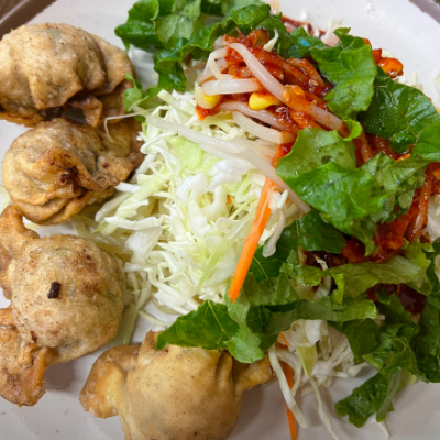 매콤한 쫄면에 군만두 같이 먹으니 꿀맛이였어요.