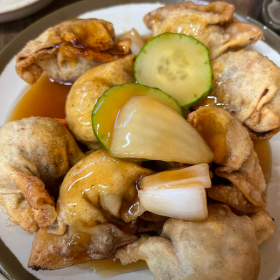 군만두의 만두피가 쌀가루가들어 갔는지 피가 다르네요. 맛있어요.
