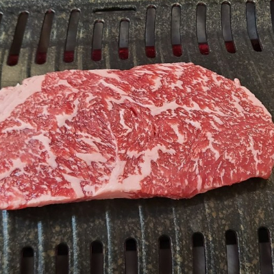 등심 먹던 와중에 육회도 한번 주문했는데 가 여태껏 먹어본 육회랑은 비주얼이 조금 남다르더라고요. 계란 노른자가 따로 나오고 양념에 무린 스타일이었어요.