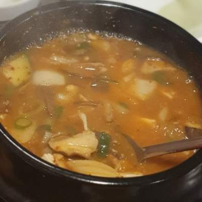 사장님께서 옹심이 미역국 서비스로 내어주셨어요. 뜨끈하니 맛이 좋습니다.