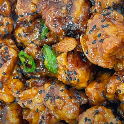 설탕 물엿이 아닌 조청만을 사용했다는 닭강정은 매운맛 조절 가능합니다.