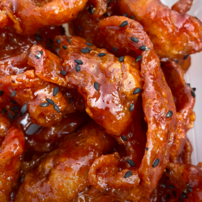 닭강정 양념에 조청을 사용해서 은은하게 달고 맛나요.