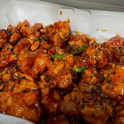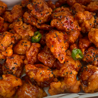 설탕 물엿이 아닌 조청만을 사용했다는 닭강정은 매운맛 조절 가능합니다.