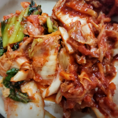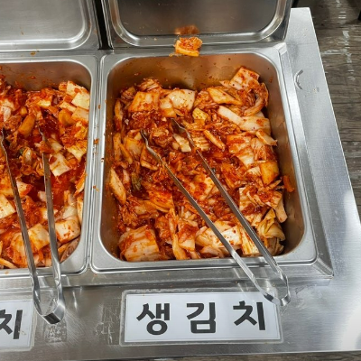 밑반찬으로는 김치가 있는데 익은김치와 생김치 둘 다 양념이 비슷해서 맛 차이는 별로 없지만, 익은 쪽이 약간 더 산도가 있습니다.
