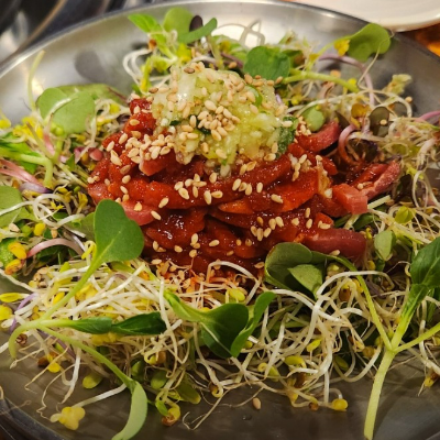 가성비가 어머어마한 곱창집입니다. 곱창을 시키니 서비스로 육회를 주시는데 양이 엄청 많아요.