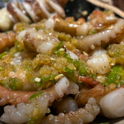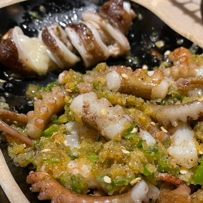 메뉴도 산낙지와 닭목살 전부 맛있고 소스도 잘 어울려요.