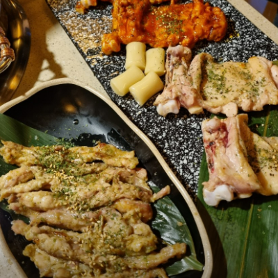 낙지 구워서 김에 싸서 먹으니까 별미입니다. 닭갈비는 엄청 부드럽고 닭목살은 쫄깃쫄깃 야들야들한 식감이 매력적이라 세트메뉴 넘나 추천드립니다.