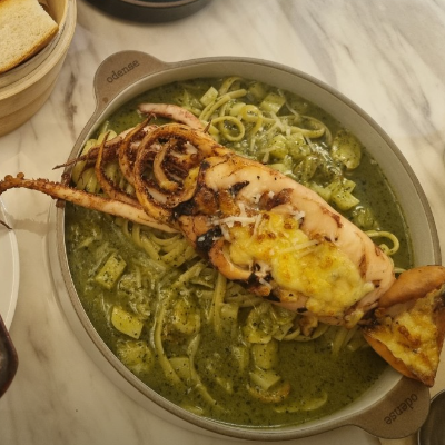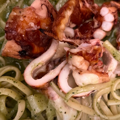 개인적으로 좋아하는 바질 파스타에 그릴로 구운 통오징어까지 같이 먹을 수 있어 좋았어요.
