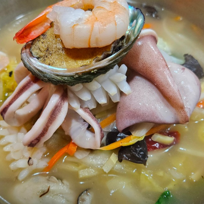 백짬뽕은 국물이 하얀색임에도 얼큰하고 깊은 맛이 나더라구요. 해산물 싱싱한게 느껴졌어요.