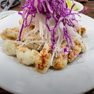 고기가 완전 큼직한게 속에 숨어있는 유자청 소스에 채썬 순무를 버무려서 와사비 살짝 얹어 간장 톡 찍으면 아삭아삭한 식감까지 더해집니다.
