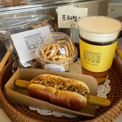 인테리어가 너무 이쁜 써니홈입니다. 인테리어도 좋지만 산책하다가 오기 좋은 카페 같아요.