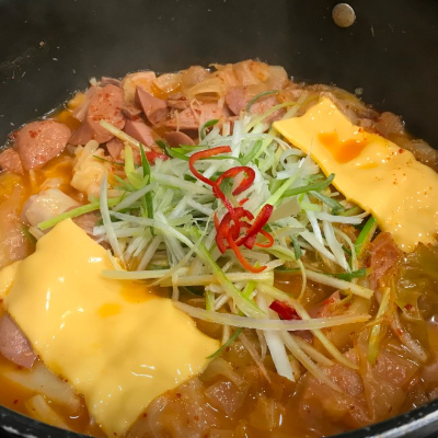 우리가 알고있는 부대찌개와 다른 담백한 맛이예요. 햄도 많이 들어 있어요.