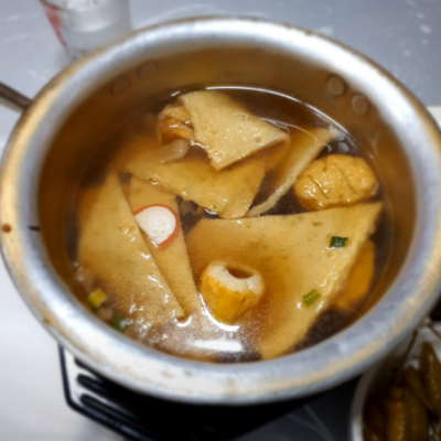오뎅탕이 기본찬으로 나오는데 대게가 쪄서 나오기 전에 입가심으로 먹기 좋았어요.