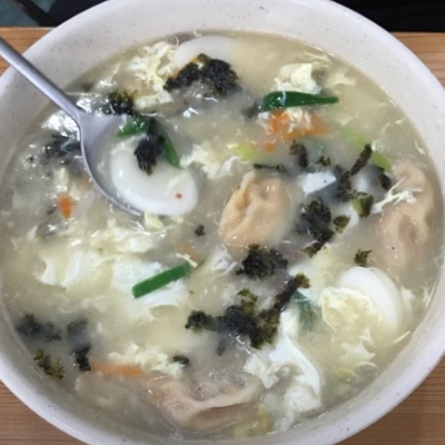 따뜻하게 떡만두국 먹었어요. 실하게 들어 있는 만두랑 국물이 뜨끈합니다.