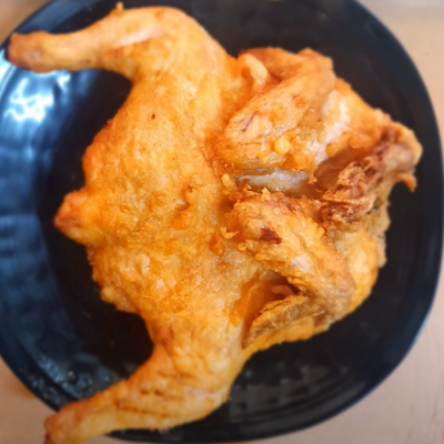 초벌 튀겨놓은 통닭을 10분 더 튀겨야해서 기다림이 필요해요. 군데군데 칼집을 넣어서 골고루 잘 익고 특히 껍질이 바삭바삭 넘넘 맛있어요.