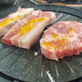 흑돼지 소금 구이랑 고추장 앙념 고기 둘 다 냄새 없이 맛있어요.