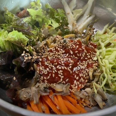 소라 비빔밥은 바다향이 나는 맛입니다. 밥 한 공기 넣고 슥슥 비벼서 먹었어요.