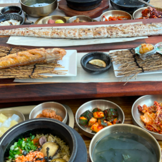 6명이서 4인분 세트메뉴와 돌솥밥2개 추가해서 푸짐하게 먹었어요.