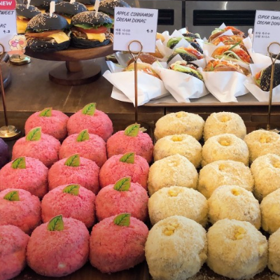 빵피 쫄깃한 식감에 예쁜도나스입니다. 부드러운 크림이 가득 들어있지만 느끼하지않고 맛있어요.