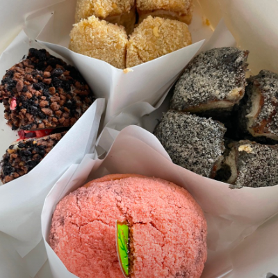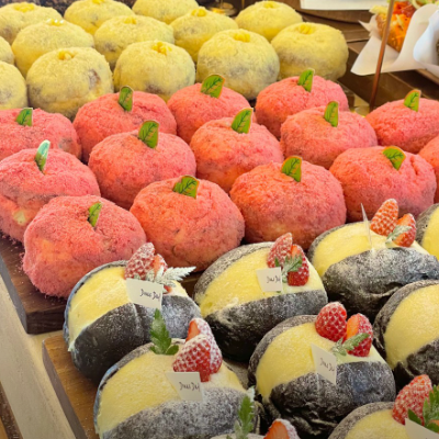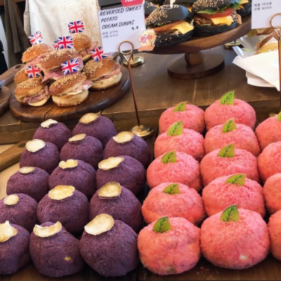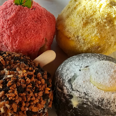 빵피 쫄깃한 식감에 예쁜도나스입니다. 부드러운 크림이 가득 들어있지만 느끼하지않고 맛있어요.