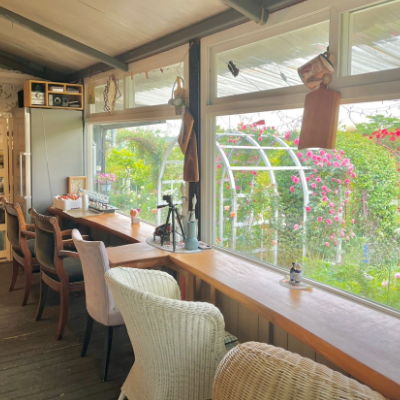 작은 카페와 큰 정원이 있는 카페입니다. 사장님이 직접 정원을 꾸미셨다고 하네요.