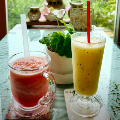 원래 카페에서 오래 앉아있는 것을 좋아하지 않아서 더위 식히고 차 마신 뒤에 밖에 나갔어요. 꽃과 사진 많이 찍었네요.