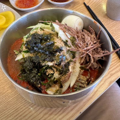남자친구가 비빔모밀 안맵고, 적당히 달고 딱 간이 좋아 맵찔이도 먹을 수 있어 좋다고 하더라구요. 튀김만두와 조합이 최고였습니다.