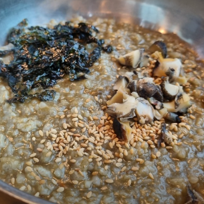 친구들과 갔다가 먹어보고 넘 맛있어서 가족여행 가면서 꼭 먹여주고 싶은 보말죽입니다.