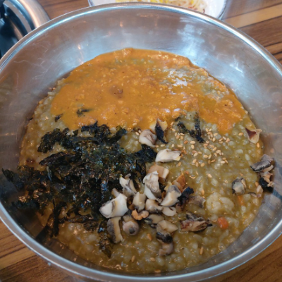 친구들과 갔다가 먹어보고 넘 맛있어서 가족여행 가면서 꼭 먹여주고 싶은 보말죽입니다.
