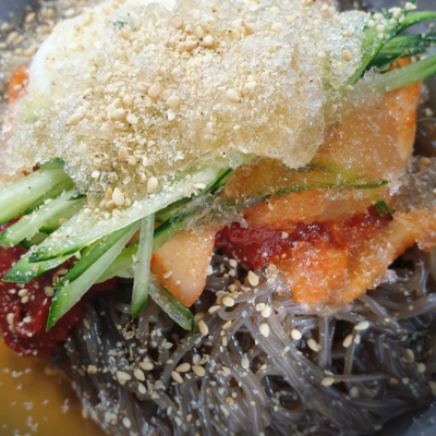 냉면이 매콤하니 맛있어요. 여름에는 역시 냉면이죠.