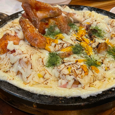 매번 능이장작구이만 먹다가 치즈콘닭은 처음인데 치즈양 진짜 미쳤어요.