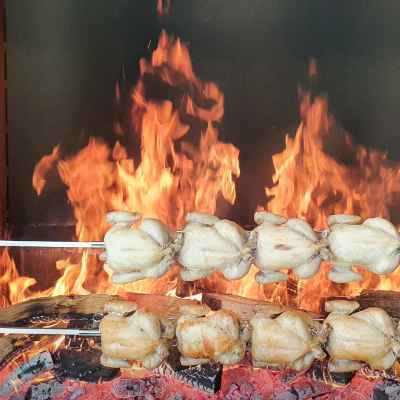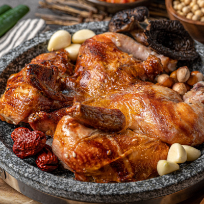 본토박이 장작구이에 능이버섯도 들어가고, 닭을 겉바속촉 맛있게 장작에 구워주세요.