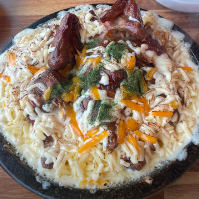 치즈콘은 철판에 누룽지까지 만들어져서 나오는데 누룽지밥에 닭고기 얹어먹으니 완전 꿀맛입니다.