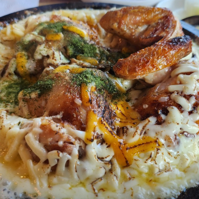 치즈콘은 철판에 누룽지까지 만들어져서 나오는데 누룽지밥에 닭고기 얹어먹으니 완전 꿀맛입니다.