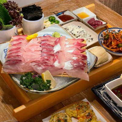 뷰도 너무 멋지고 고소한 고등어회에 따끈한 모듬전 너무 맛있게 먹고 왔어요.