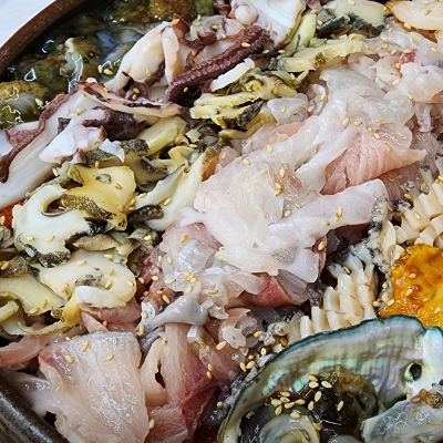 물회도 찐 맛집이고 반찬으로 나온 생선탕수 새우장 게장 모두 맛있어요. 직원분도 친절합니다.