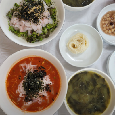 물회 자극적인맛 별로 안좋아하는데 넘 맛있게먹었어요. 특히 미역국 진짜 맛있어요.