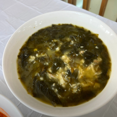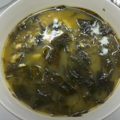 진한 장맛에 가자미회가 담뿍들어가 있고 따뜻하고 진한 미역국을 마시면 속이 확 풀려요.