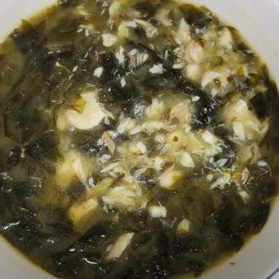 우럭미역국 포장했는데 걸쭉해서 진짜 맛있네요. 푹 고은 맛이예요.