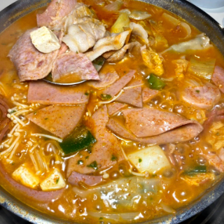 (2인) 엄선된 햄과 재료를 잔뜩 넣어 진한 감칠맛이 좋은 프리미엄 부대전골
