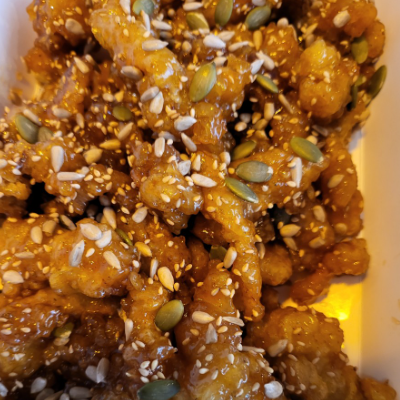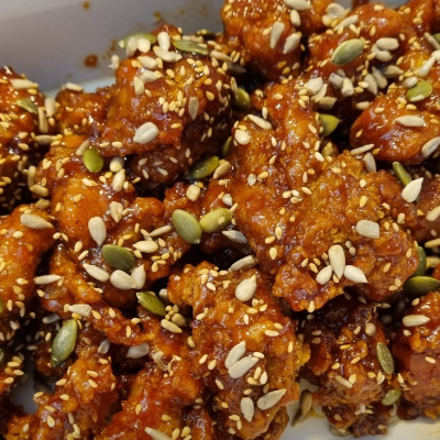 매콤한 것이 느끼하지 않고 겉에 뿌려진 호박씨와 해바라기씨가 고소한 맛을 더해주어 다음날에도 질리지않고 맛있게 먹었습니다.