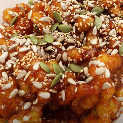 매콤한 것이 느끼하지 않고 겉에 뿌려진 호박씨와 해바라기씨가 고소한 맛을 더해주어 다음날에도 질리지않고 맛있게 먹었습니다.