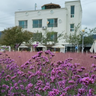 유명한 유기농카페 처음 왔는데 보라색 버베나꽃밭이 싱그러워요.