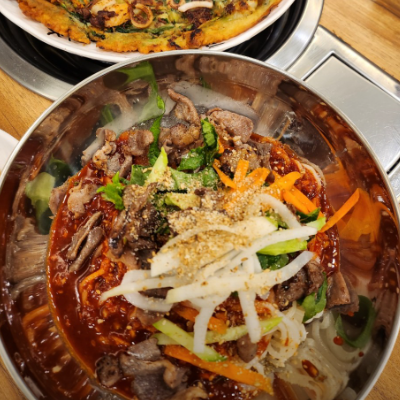 칼국수 비빔국수 파전 다 맛있어요. 비빔국수랑 파전 같이 먹음 더 맛있는 느낌 나요.